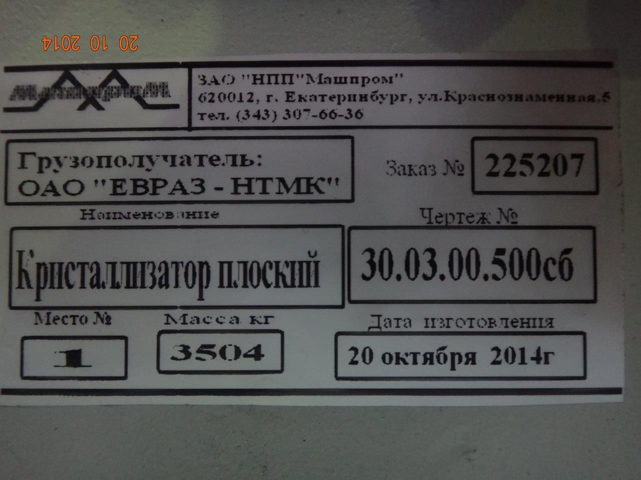 Специалисты ЗАО НПП «Машпром» изготовили комплект корпусов кристаллизатора для МНЛЗ №1 ОАО «ЕВРАЗ-НТМК» конвертерного цеха. Количество корпусов — 4 штуки. В ходе разработки Техно-рабочего проекта были учтены все замечания технических специалистов ОАО «ЕВРАЗ-НТМК». Все кристаллизаторы успешно прошли тестовые испытания, в том числе испытания на герметичность.